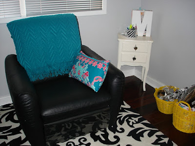 I managed to score a comfy leather recliner for my craft room, as it didn't fit in the man cave (more on the man cave progress to come). I had to move out the computer desk and chair and jarrah armchair to make space for it. Its pretty dominating in the room but oh so comfy to sit in.
